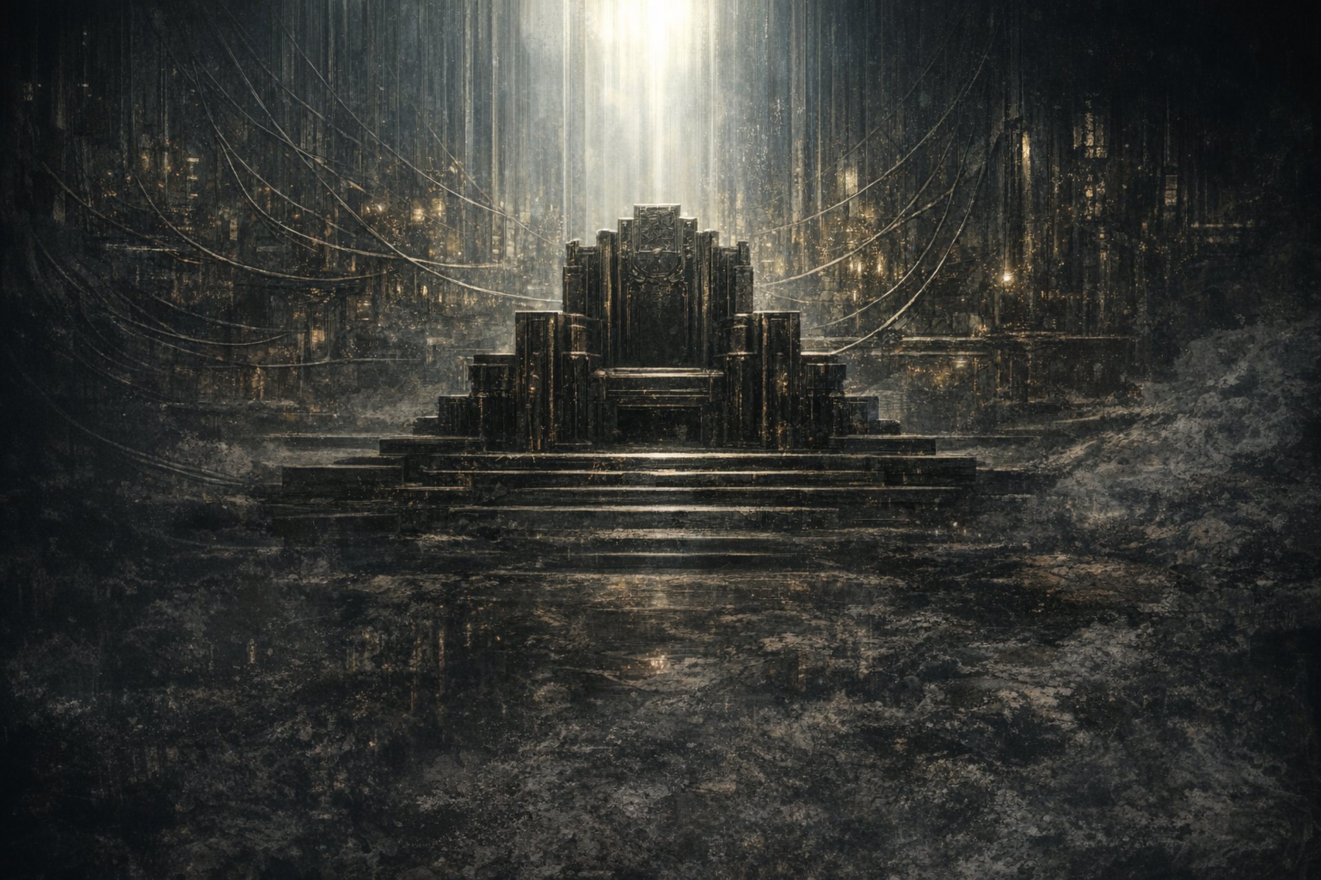 In the final work, authority remains—yet the figure disappears. What is left is a structure of power: a throne that no longer requires a face.